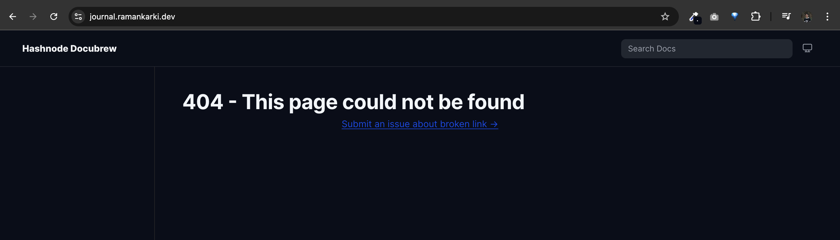 The blog site came up fine. The journal site, though? Nothing. It just wouldn't work properly. My best guess is there's a bug in Hashnode when you try to run multiple blogs under a single account. I couldn't pin it down exactly, but something is clearly broken there.